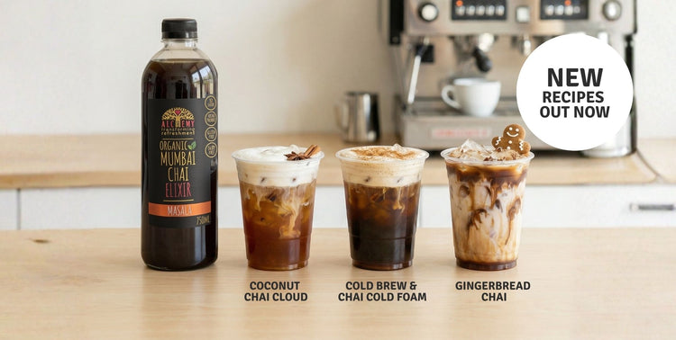 Your favourite festive hug, poured over ice. Warming gingerbread spices meet the bold, aromatic depth of Organic Mumbai Chai, balanced perfectly with chilled milk (dairy or plant). Cosy, comforting, and refreshing all at once.